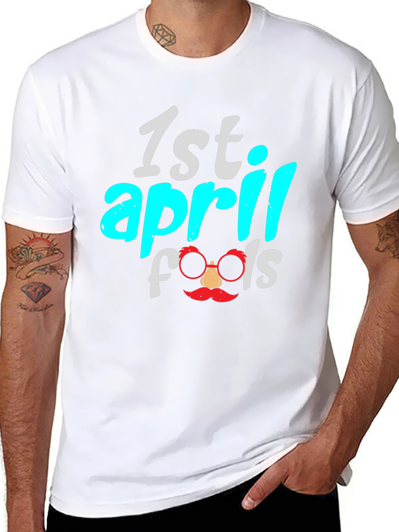 Celebrate April Fool's Day in style with this fun graphic tee! The shirt features the text "1st april fools" in a playful design, complete with a novelty eyeglass and mustache graphic. This tee is perfect for adding a touch of humor to your wardrobe or for wearing to an April Fool's party. Made from a comfortable fabric, this tee is perfect for everyday wear. Show off your love for pranks and jokes with this unique and eye-catching shirt.