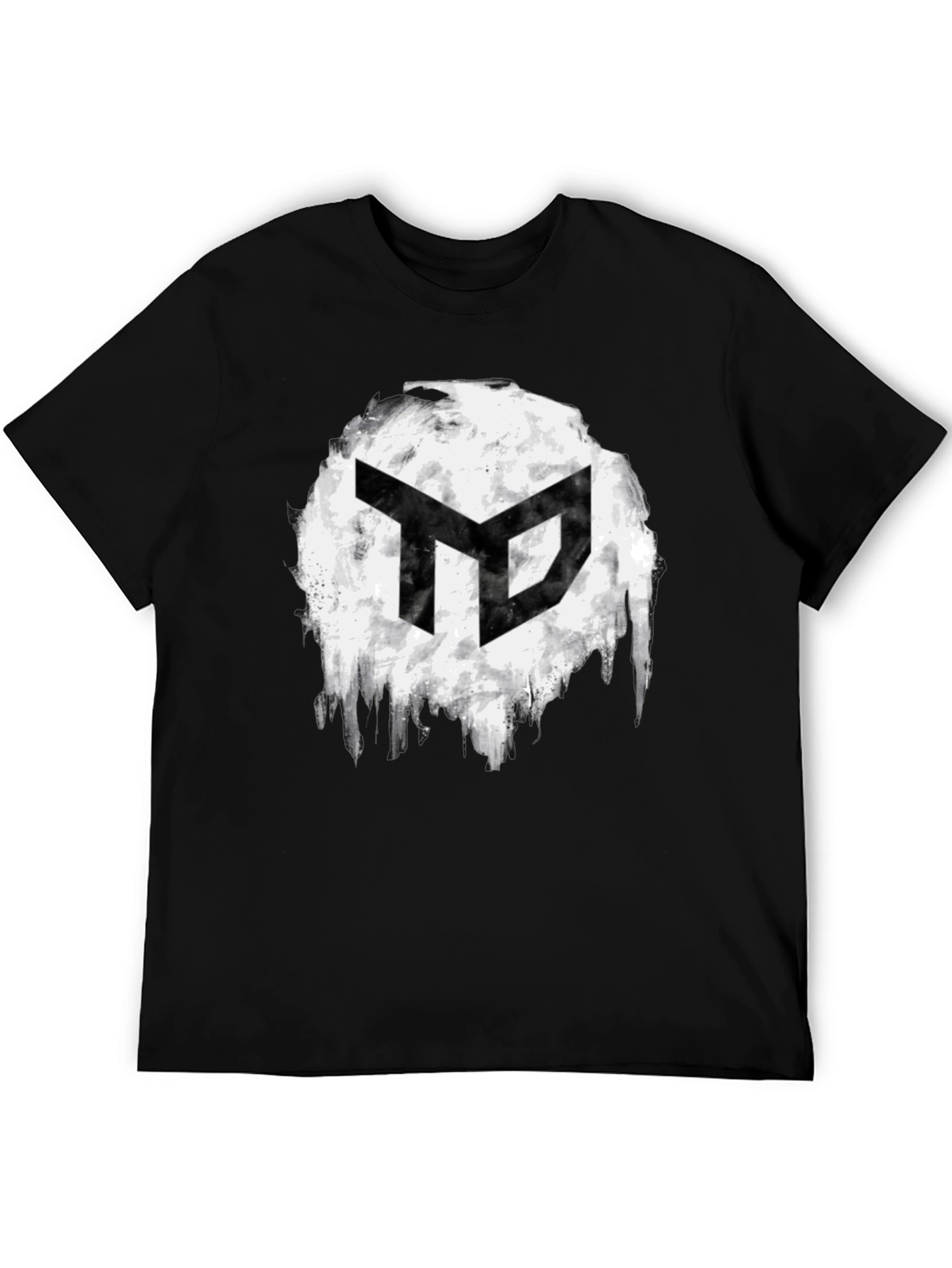 Make a bold statement with this stylish black t-shirt! This eye-catching shirt features a striking abstract logo graphic, making it a standout piece in any wardrobe. The design incorporates a modern, minimalist aesthetic with distressed white accents, giving it a unique and edgy look. Crafted from comfortable materials, this tee is perfect for everyday wear, casual outings, or expressing your individual style. Pair it with jeans or shorts for an effortlessly cool vibe. Upgrade your look with this must-have graphic tee today!