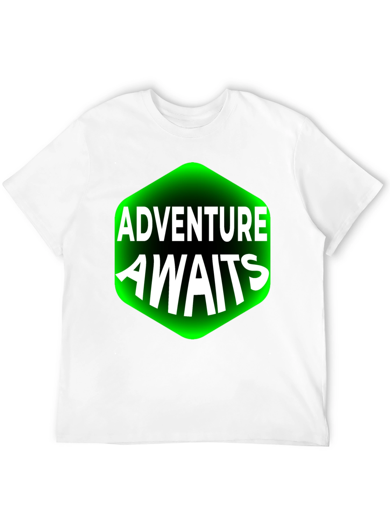 Embrace the thrill of exploration with this Adventure Awaits graphic tee. This classic black t-shirt features a bold, neon green, hexagon-shaped design with the words "ADVENTURE AWAITS" in a bright, white font. Made from comfortable, breathable cotton, it's ideal for everyday wear or your next outdoor escapade. The eye-catching graphic adds a touch of personality to any outfit, making it a versatile piece for casual outings, travel, or simply expressing your adventurous spirit. Show off your wanderlust with this unique and stylish tee.