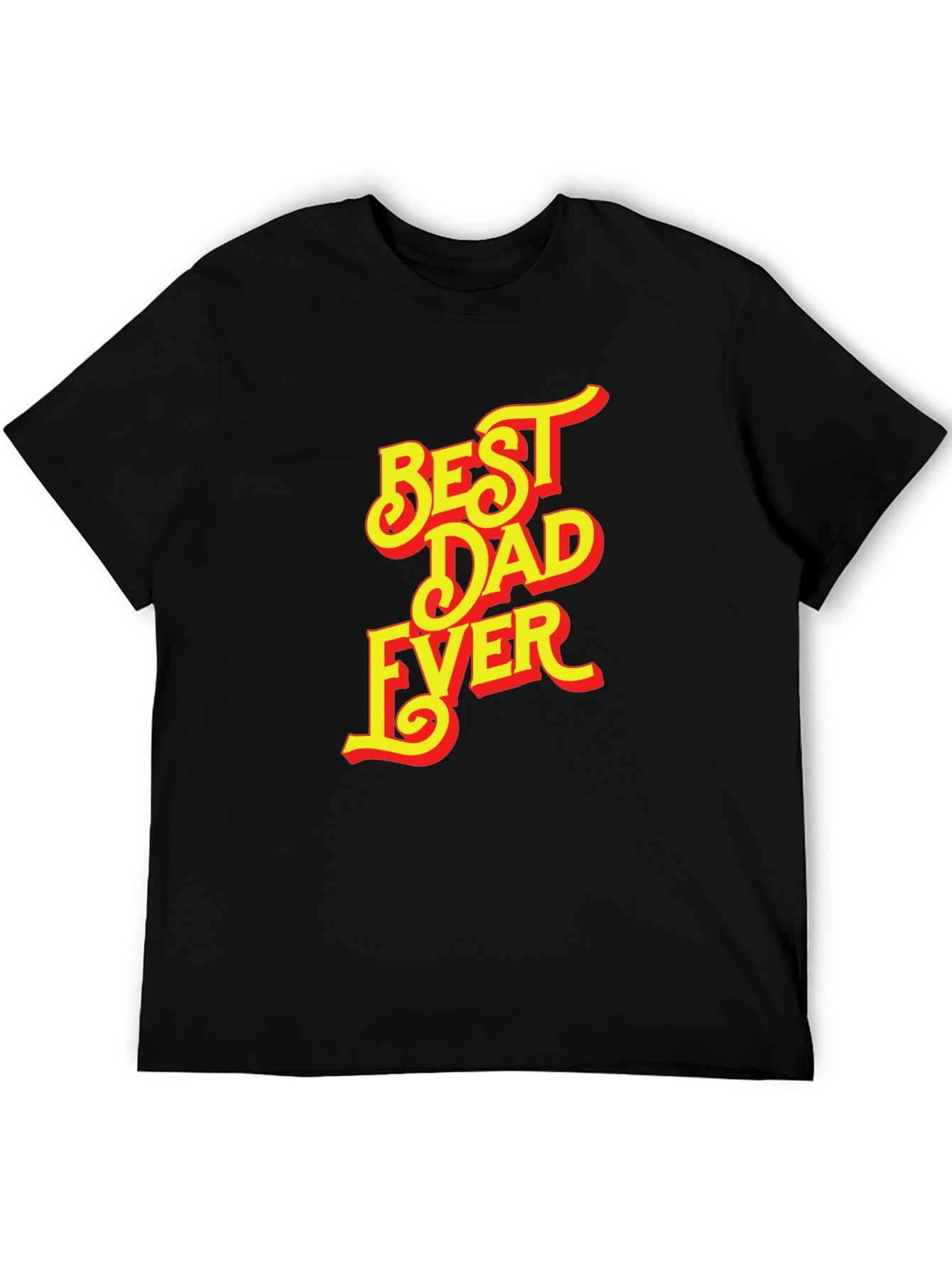 Celebrate the world's best dad with this classic black t-shirt. The shirt features a bold, eye-catching "Best Dad Ever" graphic in a retro font with yellow and red accents. Made from a comfortable, breathable fabric, this t-shirt is perfect for everyday wear. Show your appreciation for dad on Father's Day, his birthday, or any special occasion. This stylish and meaningful gift is sure to become a favorite in his wardrobe, reminding him of your love and admiration every time he wears it.