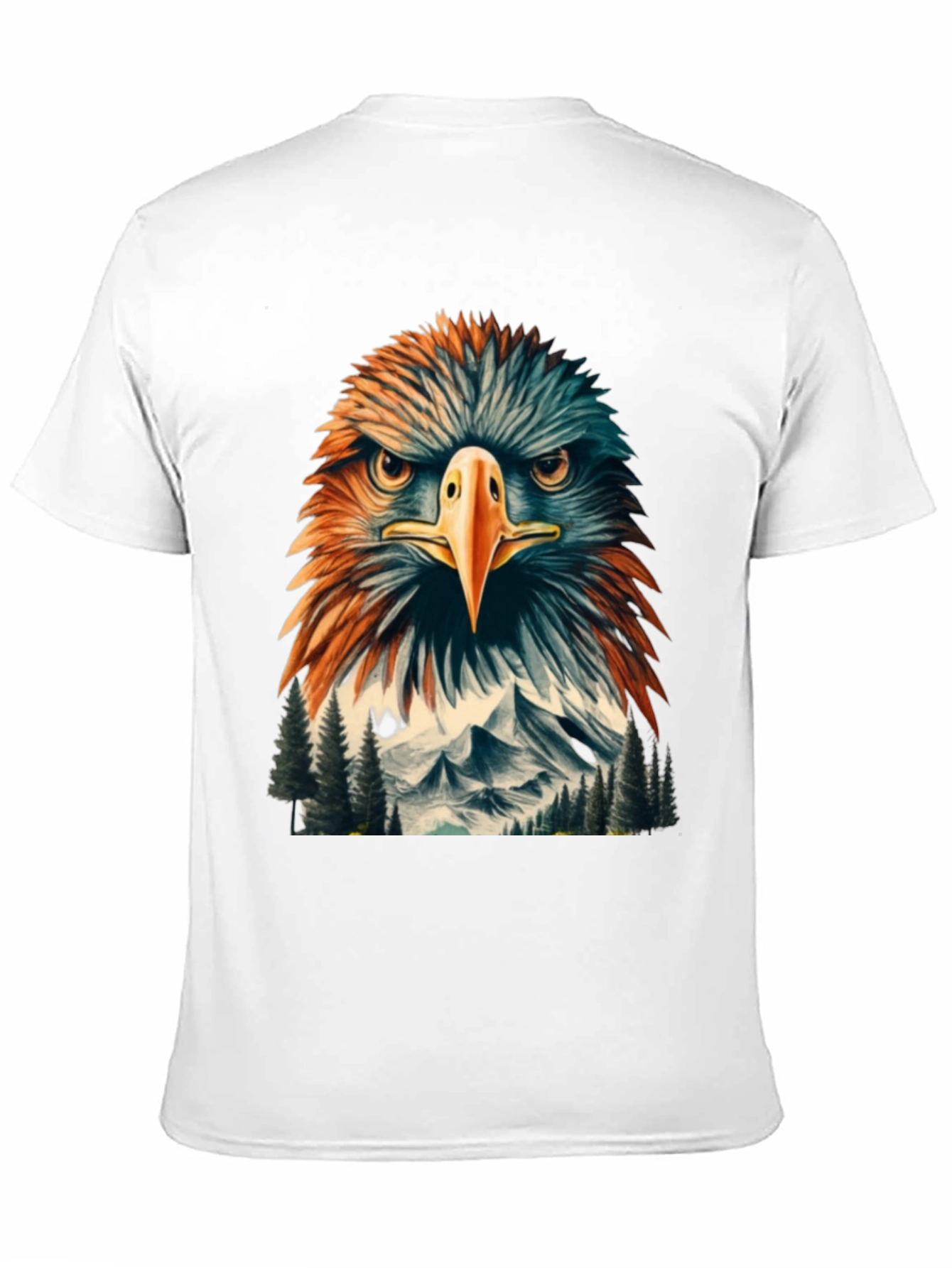 Soar high in style with this striking eagle graphic t-shirt. The bold design features a majestic eagle head with a mountainous backdrop, creating a powerful and visually appealing statement. Crafted from comfortable, breathable fabric, this tee is perfect for everyday wear. The black color provides a sleek canvas for the vibrant graphic, ensuring it stands out. Ideal for casual outings, nature enthusiasts, or anyone looking to add an edgy touch to their wardrobe. Express your love for wildlife and the outdoors with this unique and eye-catching t-shirt. Get yours today and elevate your style!
