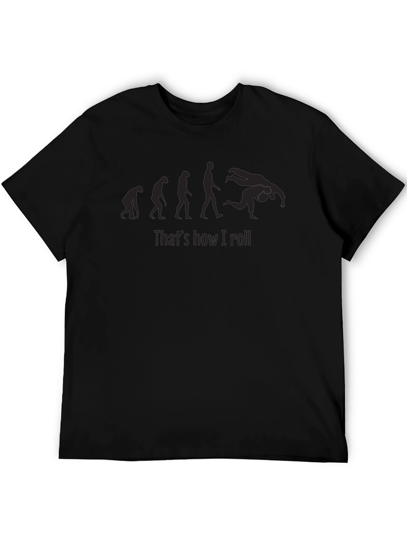 Show off your love for judo with this unique black t-shirt. The shirt features a creative design showcasing the evolution of man leading into a judo throw. The phrase 'That's how I roll' adds a humorous touch. It's made from a comfortable material, perfect for everyday wear or casual outings. Ideal for judo enthusiasts, martial arts practitioners, or anyone with a fun sense of style. Make a statement and get yours today!