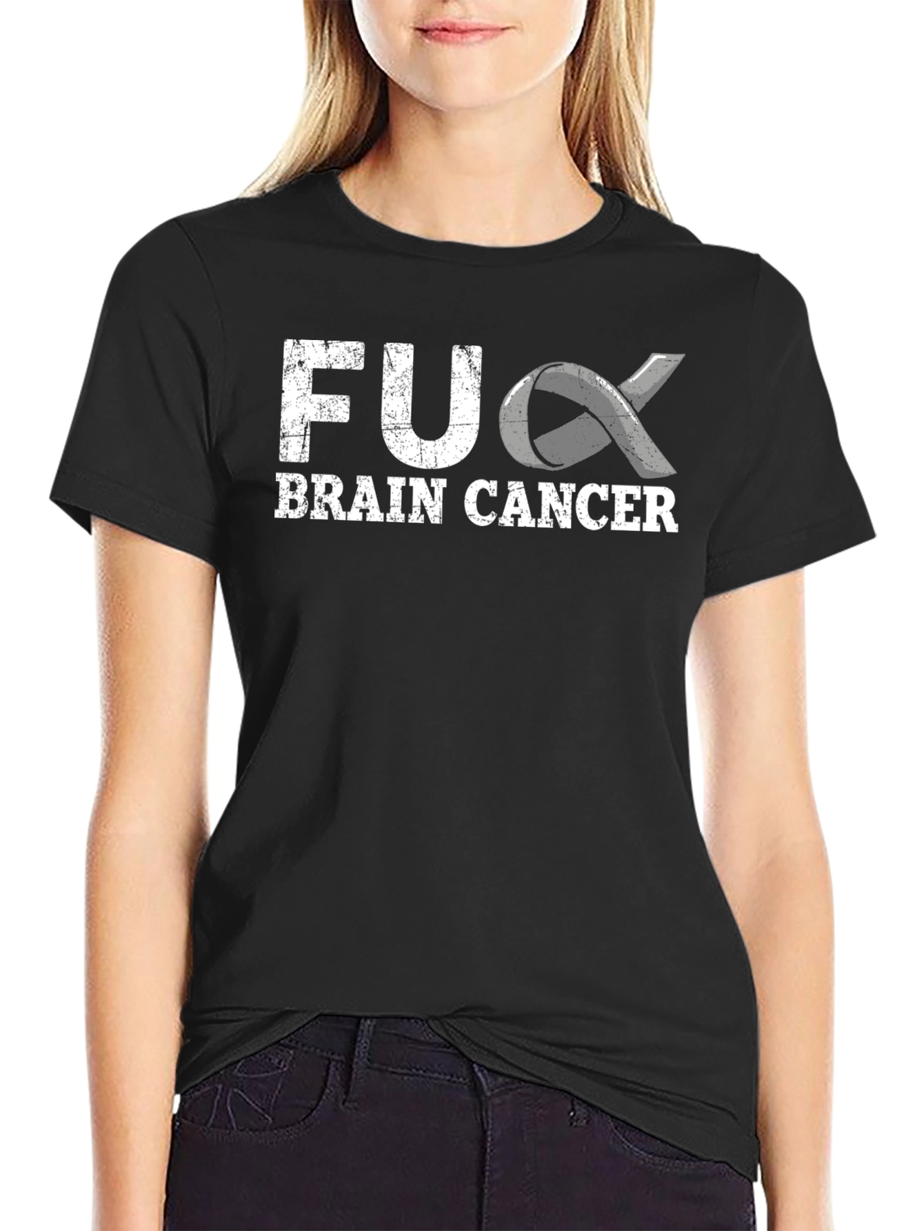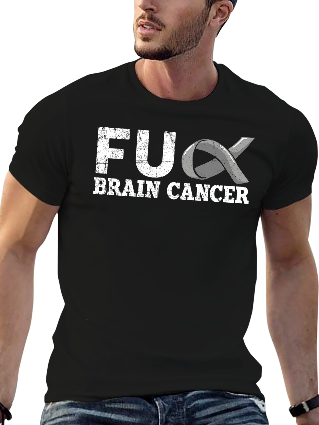 Show your support with this powerful "F*ck Brain Cancer" t-shirt. The shirt features a bold graphic design with distressed text and a gray awareness ribbon incorporated in the design. Made from a soft, comfortable black fabric, this tee is perfect for raising awareness and showing solidarity. Wear it to walks, fundraisers, or simply as a statement of hope and defiance. The simple design makes it versatile enough to pair with jeans, shorts, or casual wear. A powerful way to support brain cancer awareness.