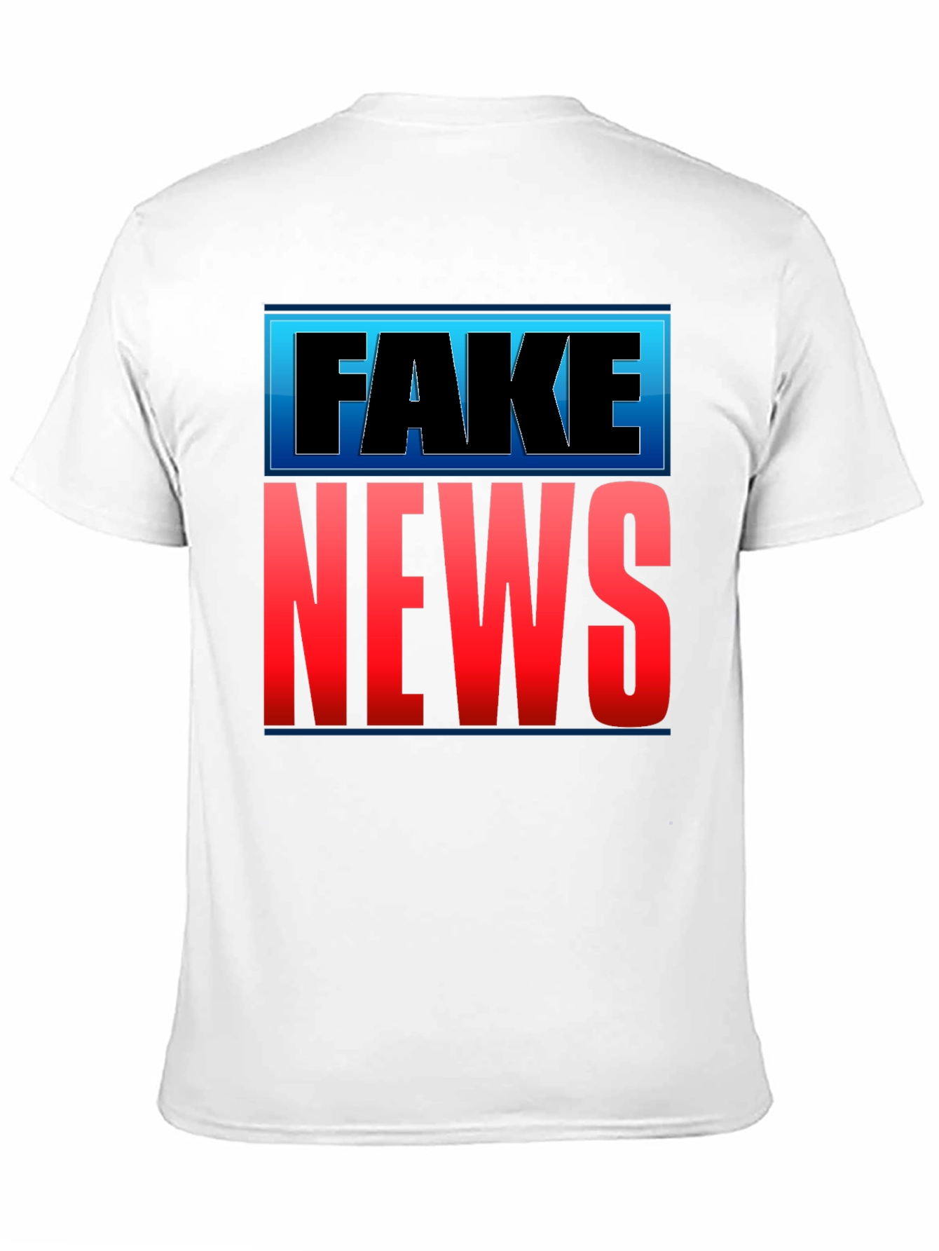 Make a bold statement with this eye-catching "Fake News" graphic t-shirt. Featuring a black crew neck style, this tee is designed for comfort and impact. The words "FAKE" and "NEWS" are prominently displayed in contrasting colors, with "FAKE" set against a blue backdrop and "NEWS" in a vibrant red. Ideal for casual wear, political events, or sparking conversation, this t-shirt offers a unique way to express your views. Made from soft, breathable fabric, it's perfect for everyday wear. Stand out from the crowd and share your perspective with this striking graphic tee.