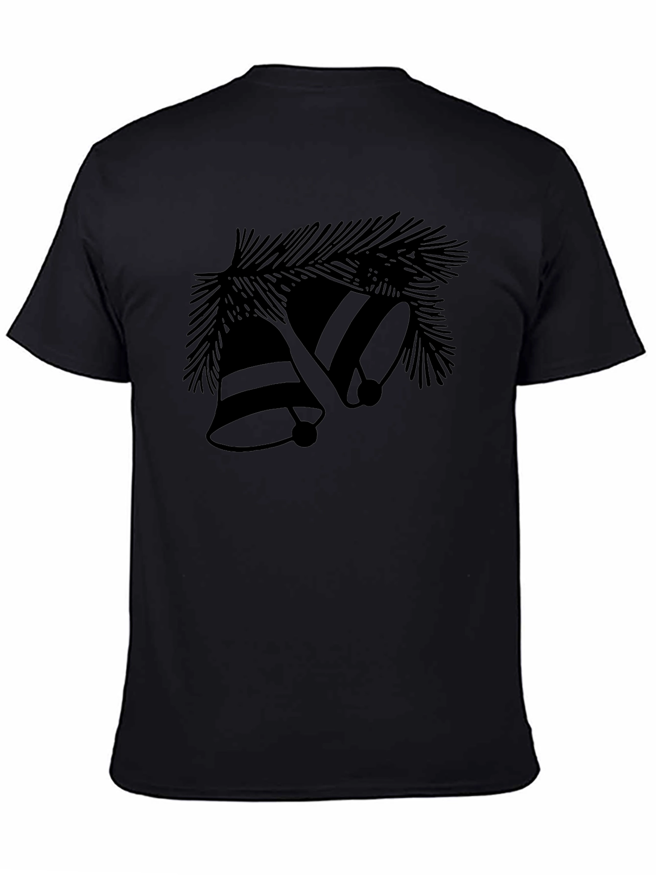 Embrace the holiday spirit with this stylish black graphic tee. Featuring a festive design of two bells nestled amidst pine sprigs, this shirt is perfect for spreading cheer. The graphic is bold and eye-catching, creating a unique and timeless look. Made from comfortable materials, this tee is ideal for casual outings, holiday gatherings, or cozy nights by the fire. Wear your love for the season with this must-have addition to your wardrobe and it also makes a thoughtful gift for friends and family.