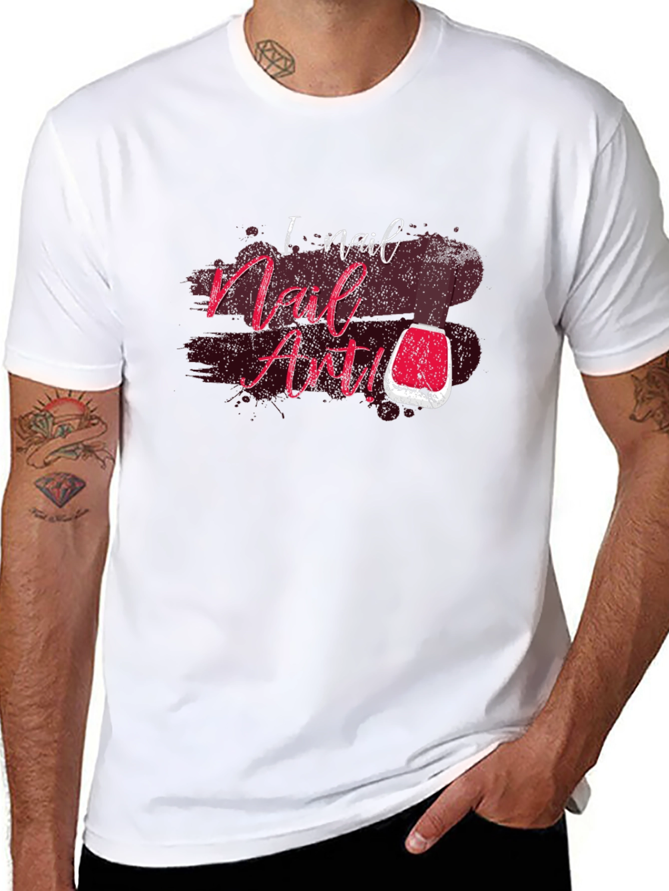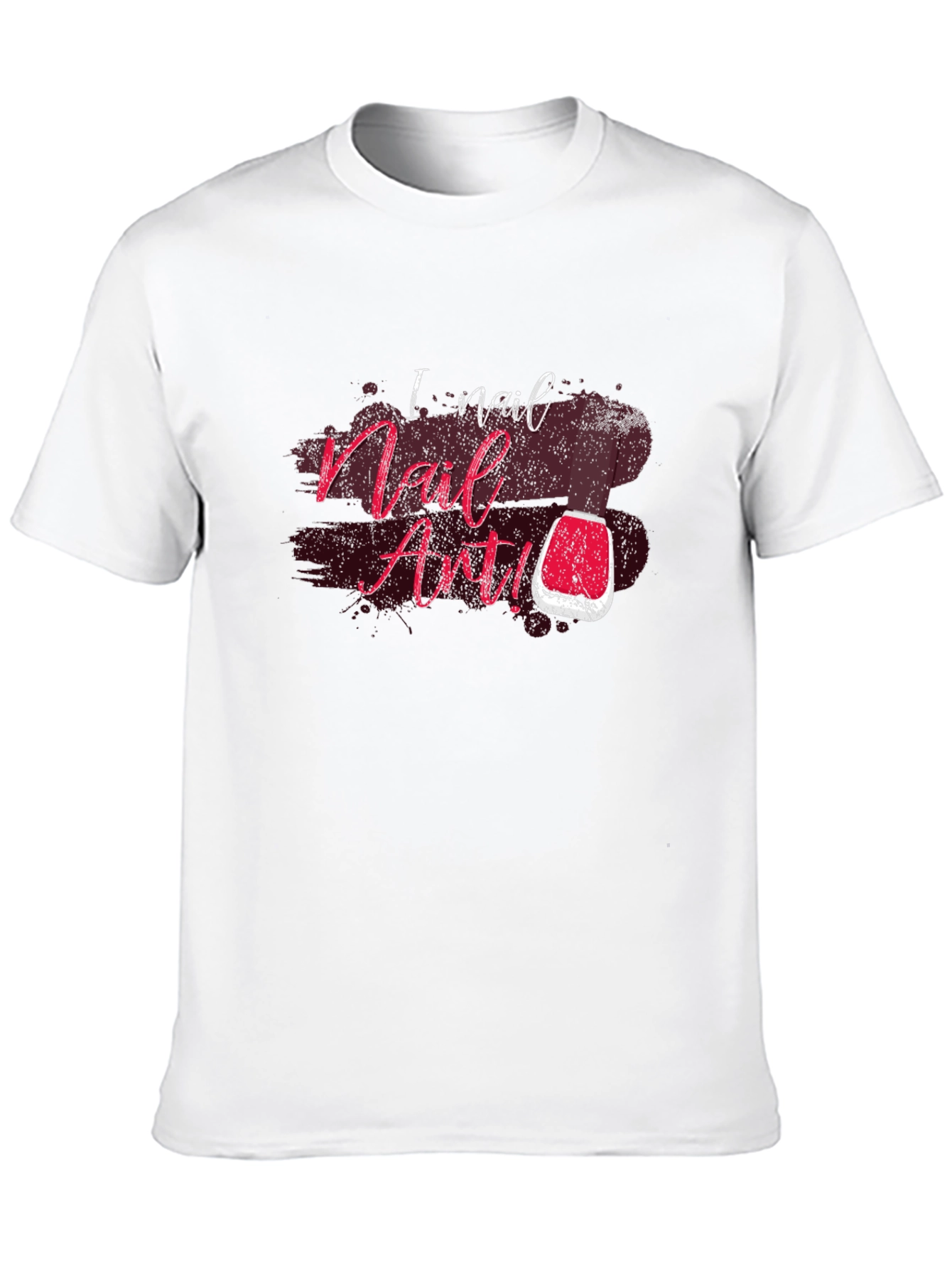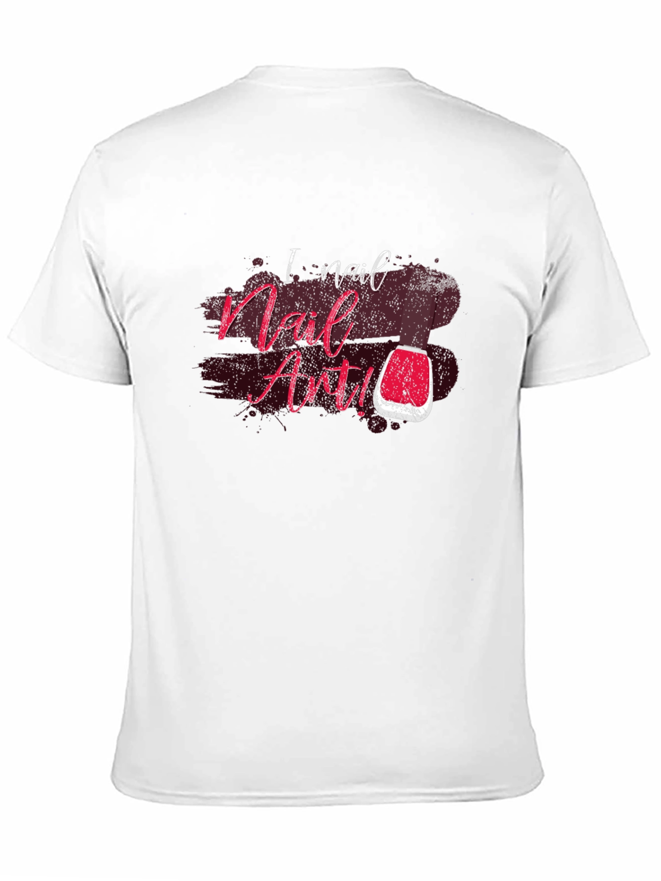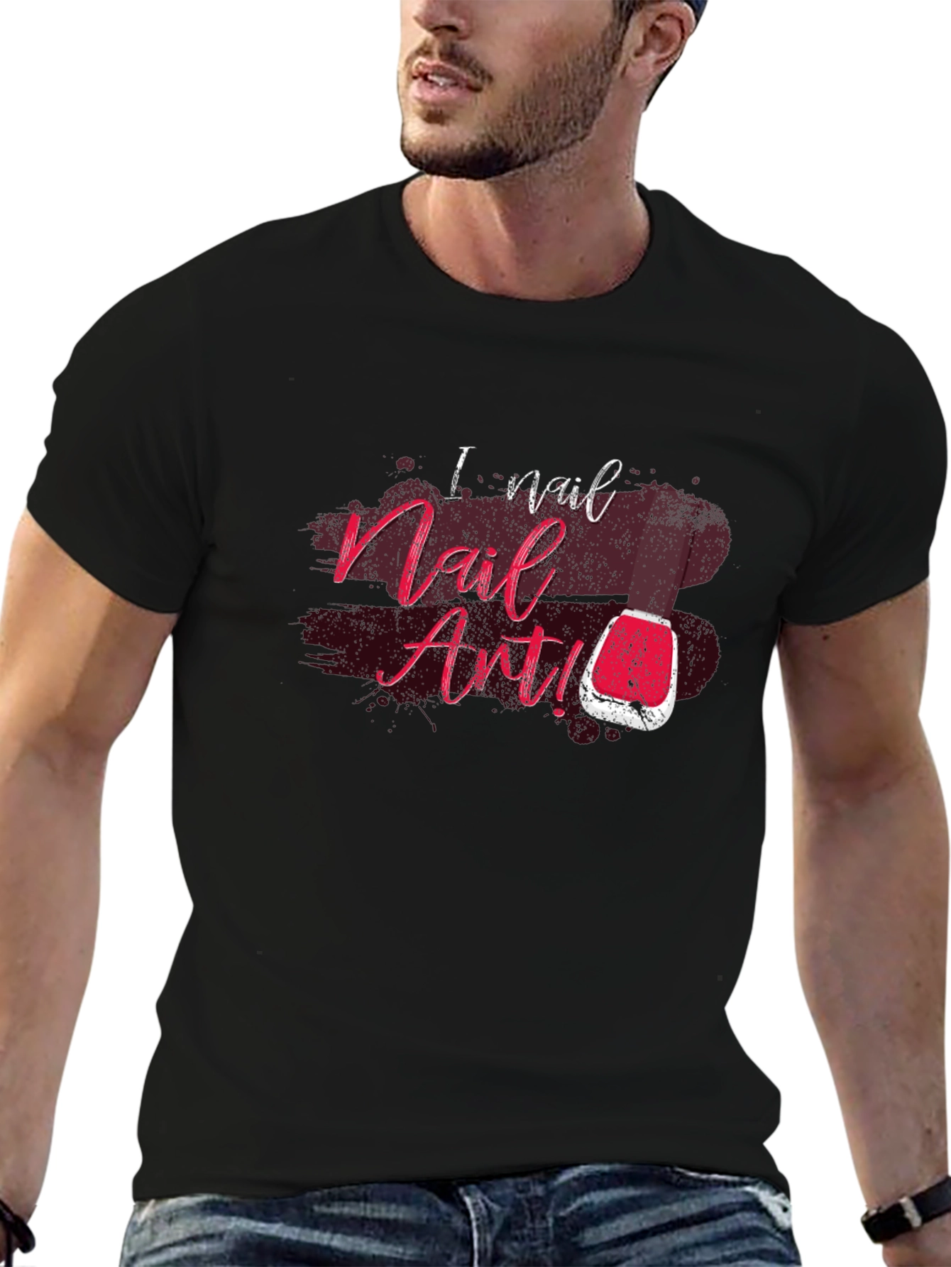 Show off your love for nail art with this stylish black graphic tee! The shirt features a bold and playful design with the text "I Nail Nail Art!" in a striking red and white font. The design is complemented by a nail polish bottle graphic. Made from a comfortable-looking fabric, this tee is perfect for everyday wear or for showing your passion at nail art events. The classic fit makes it suitable for all body types. A great gift for nail technicians or anyone who loves beautiful nails!
