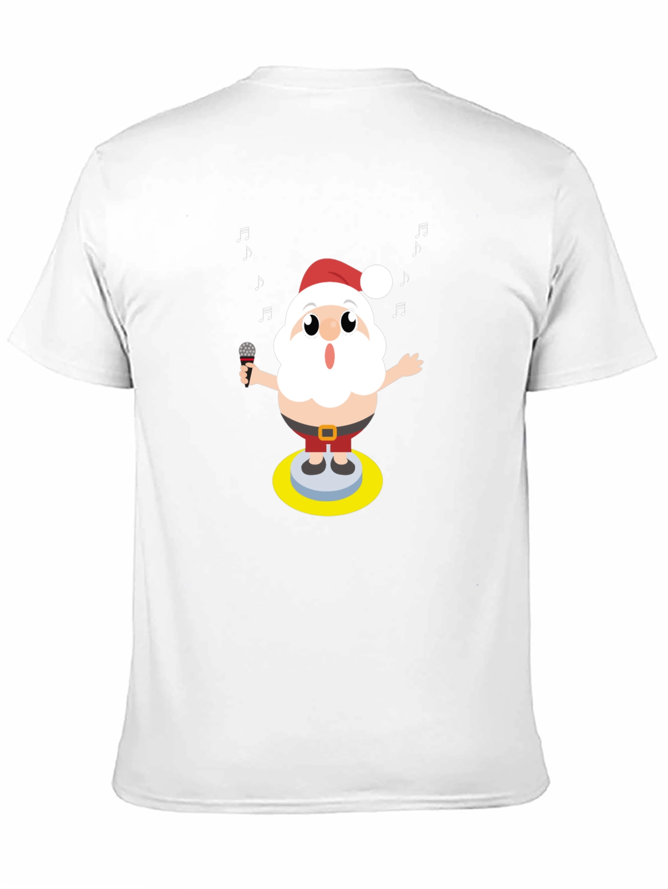 Spread holiday cheer with this fun Karaoke Santa T-Shirt! The black tee features a cartoon Santa Claus with a microphone, standing on a stage under musical notes. The design is vibrant and eye-catching, perfect for holiday parties, Christmas Eve, or just showing off your festive spirit. This comfortable, casual shirt is sure to be a hit. Get ready to sing your heart out this season!