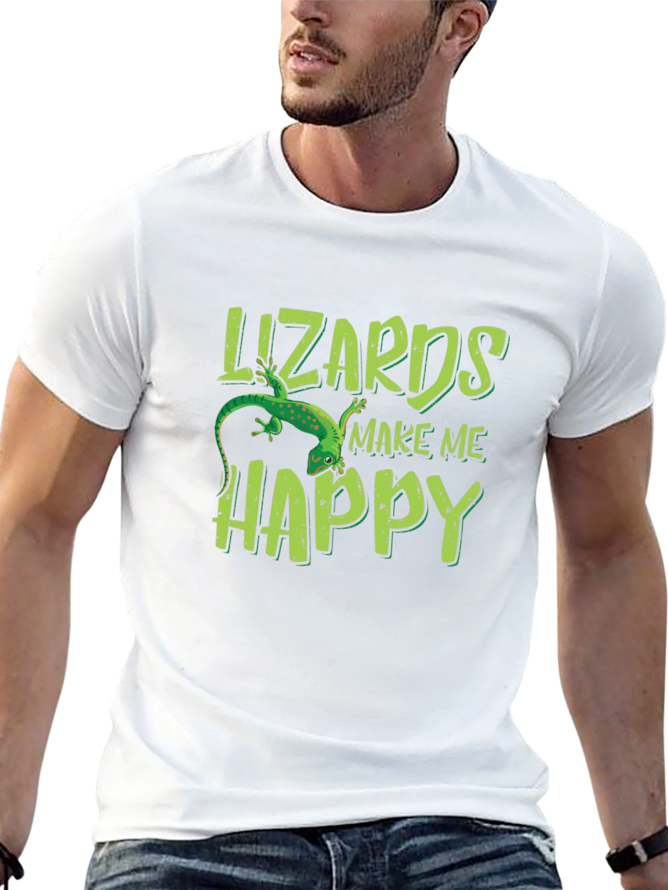 Show off your love for reptiles with this playful graphic tee! The black shirt features a vibrant green design that reads "LIZARDS MAKE ME HAPPY," playfully incorporating a green lizard into the word art. Made from a comfortable-looking material, this tee is perfect for casual wear, reptile enthusiasts, or anyone who loves a fun, quirky t-shirt. Wear it to the zoo, herpetology events, or just lounging around to spread some lizard joy!