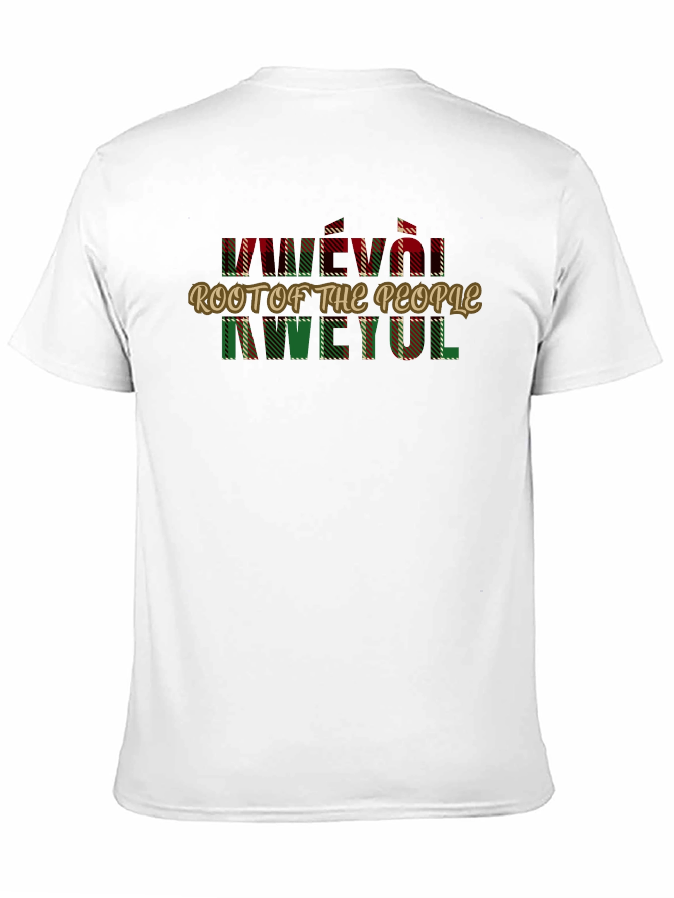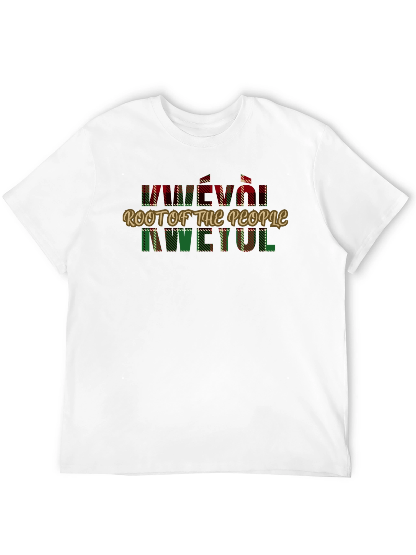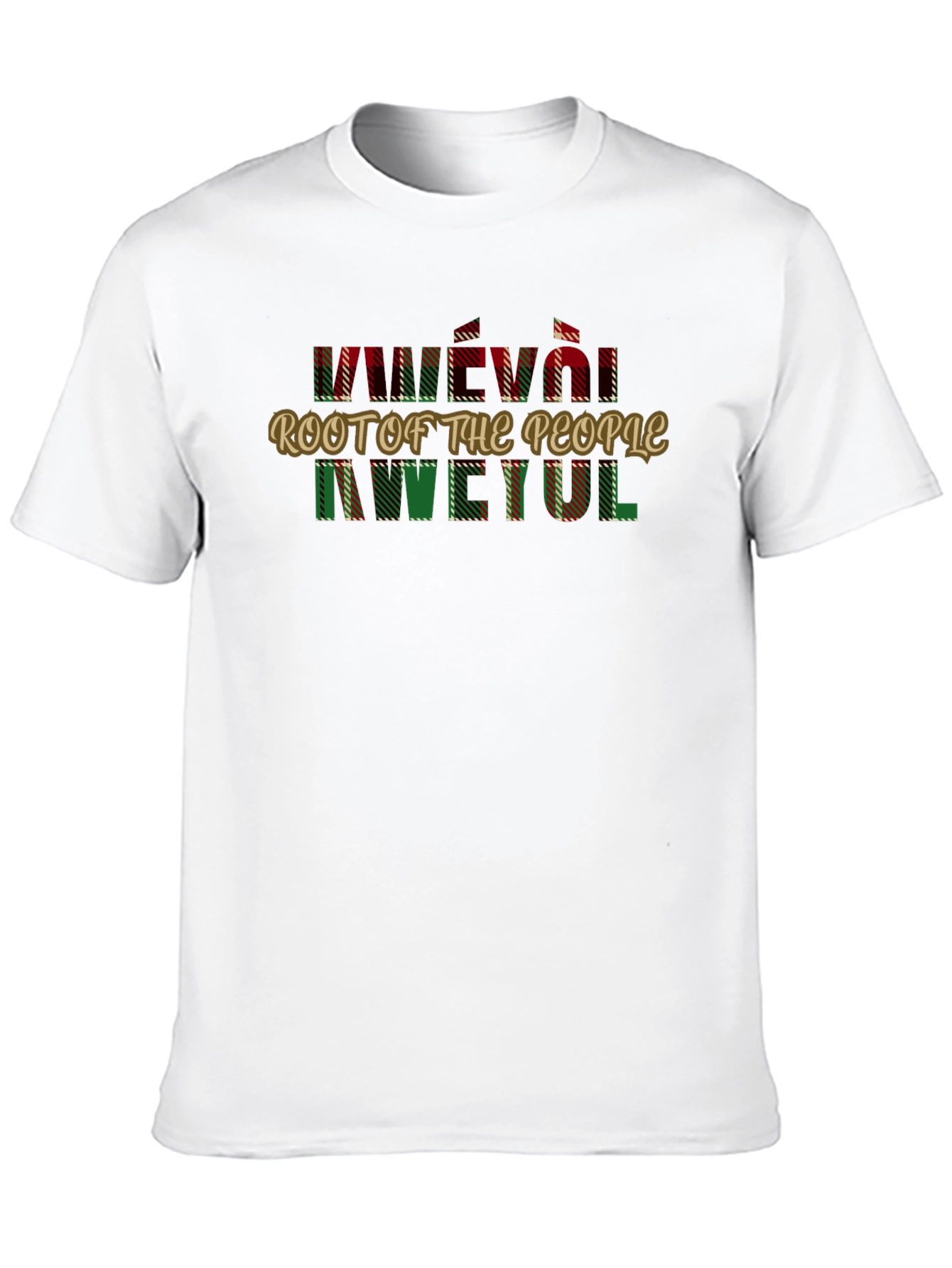 Show off your connection to humanity in this black crew neck t-shirt. Featuring a bold "Root of the People" design with plaid-patterned lettering, this tee is a stylish statement piece. The top portion is in a red tone while the bottom is in a green tone. Made from comfortable, breathable fabric, it's perfect for casual wear, social gatherings, or expressing your values. Dress it up with a blazer or keep it casual with jeans and sneakers. This unique t-shirt is a great way to express your connection to your roots.