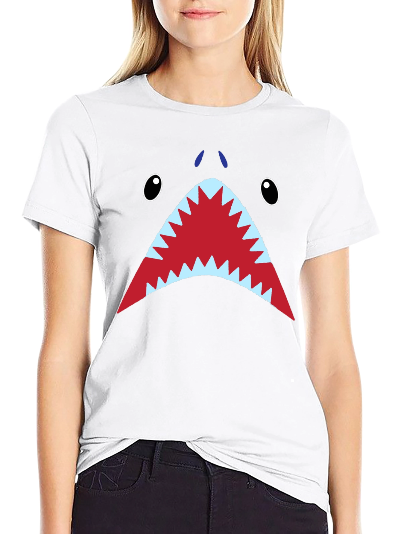 Unleash your inner predator with this eye-catching men's t-shirt! Featuring a bold, cartoon-style shark face graphic, this shirt is sure to make a statement. The design includes a wide-open shark mouth with red teeth and a light blue gum line, completed with simple eye graphics. This short-sleeved, black tee is made of a comfortable material, perfect for casual wear. Ideal for those who love marine life or want to add a playful edge to their wardrobe. Stand out from the crowd with this unique and stylish shark tee!