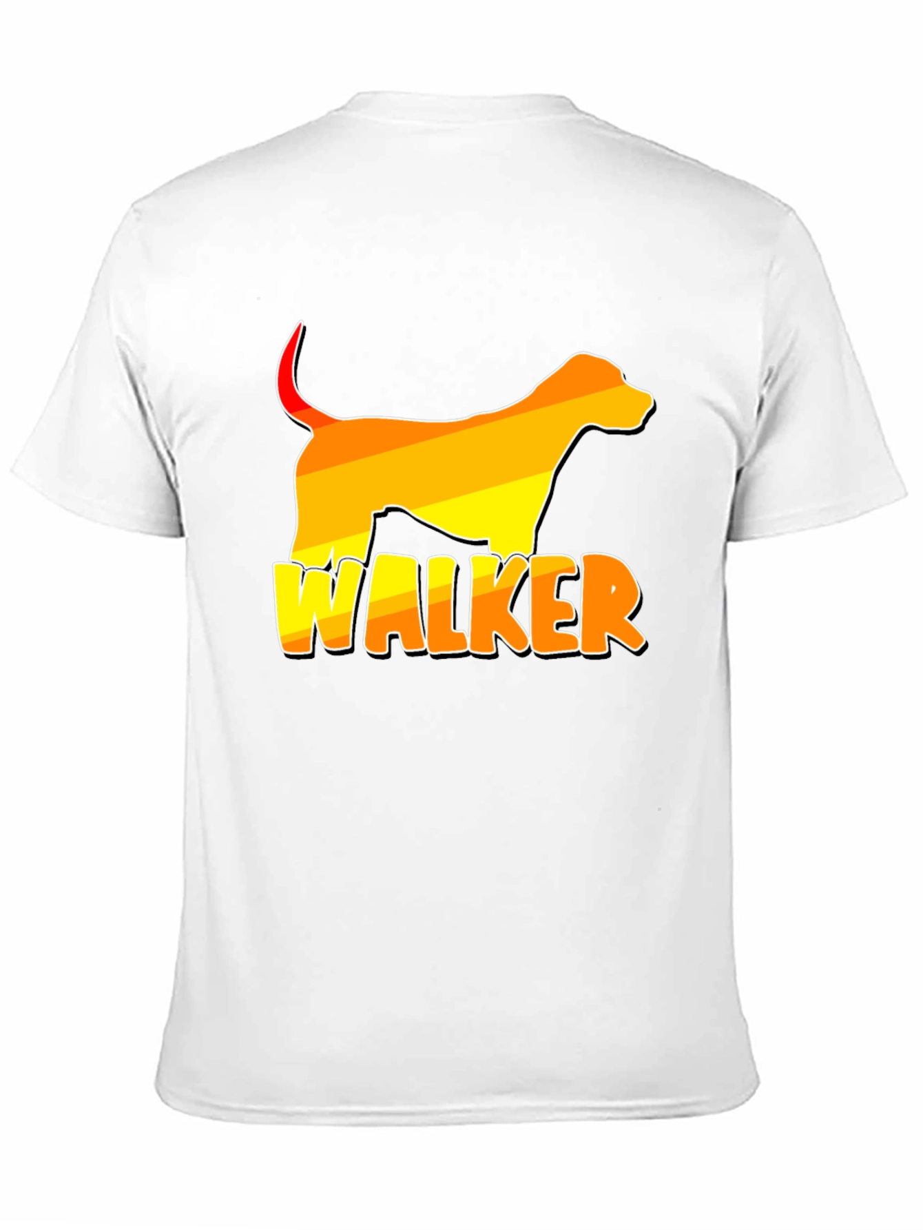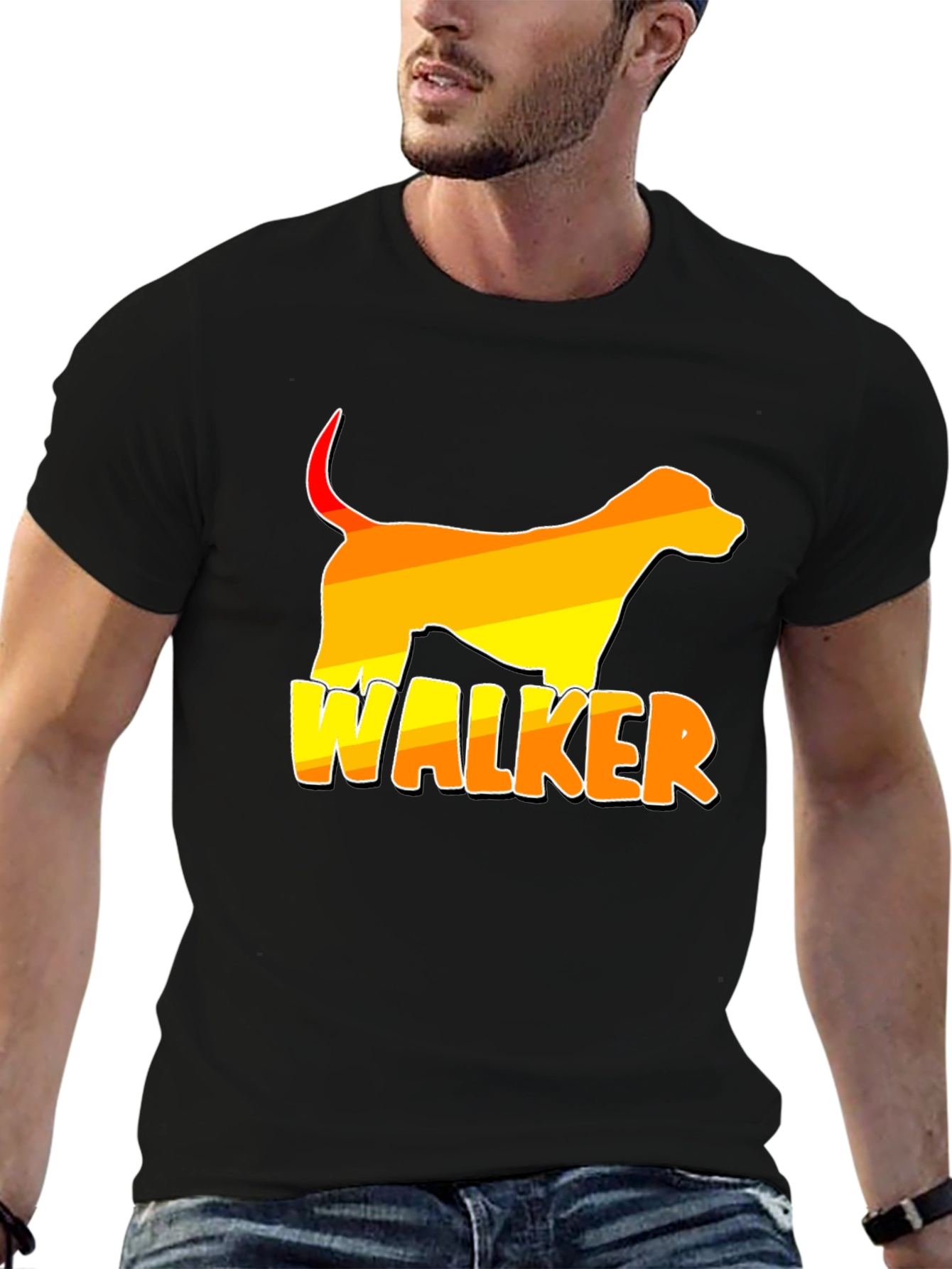 Show your love for your furry friend with this stylish graphic t-shirt! Featuring a bold silhouette of a dog with the word "WALKER" across it, this tee is sure to turn heads. The design is vibrant and eye-catching, in warm tones that pop against the black fabric. The shirt appears to be made of a soft, comfortable material, perfect for everyday wear. This unique shirt is ideal for dog owners, dog walkers, or anyone who simply adores canines. Wear it to the park, on walks with your pup, or just lounging at home. It also makes a fantastic gift for the dog lover in your life!